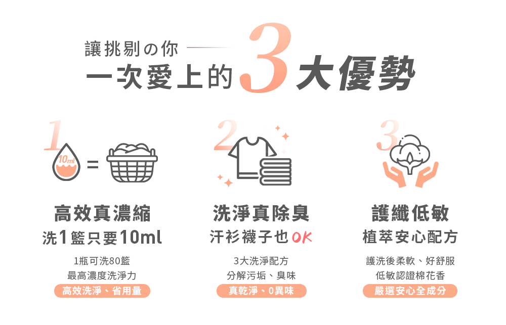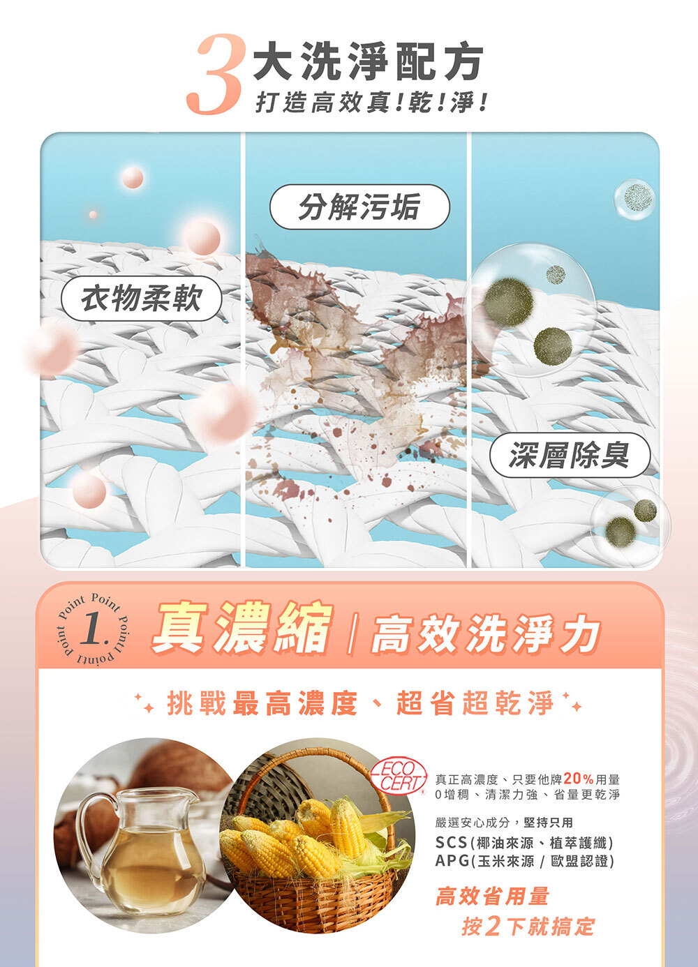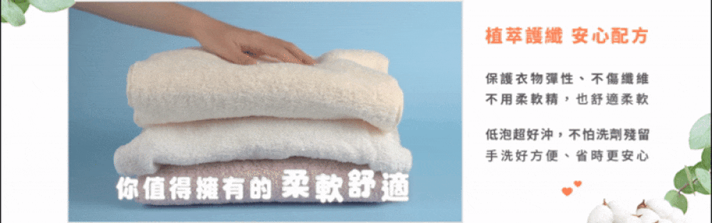 - 護纖配方,還可以讓衣物更柔軟,不僵硬