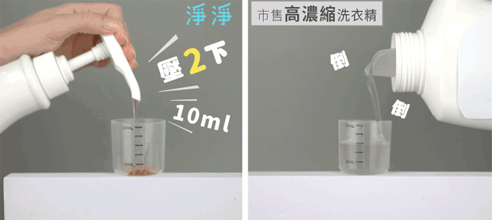 使用方式:按2下10ml洗整籃5公斤衣物,手洗用量0.5-1下即可