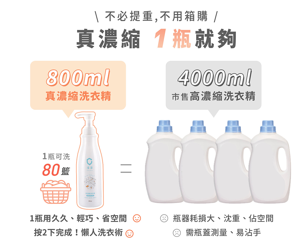 品名:【淨淨】 真濃縮洗衣精/標準瓶 800ml