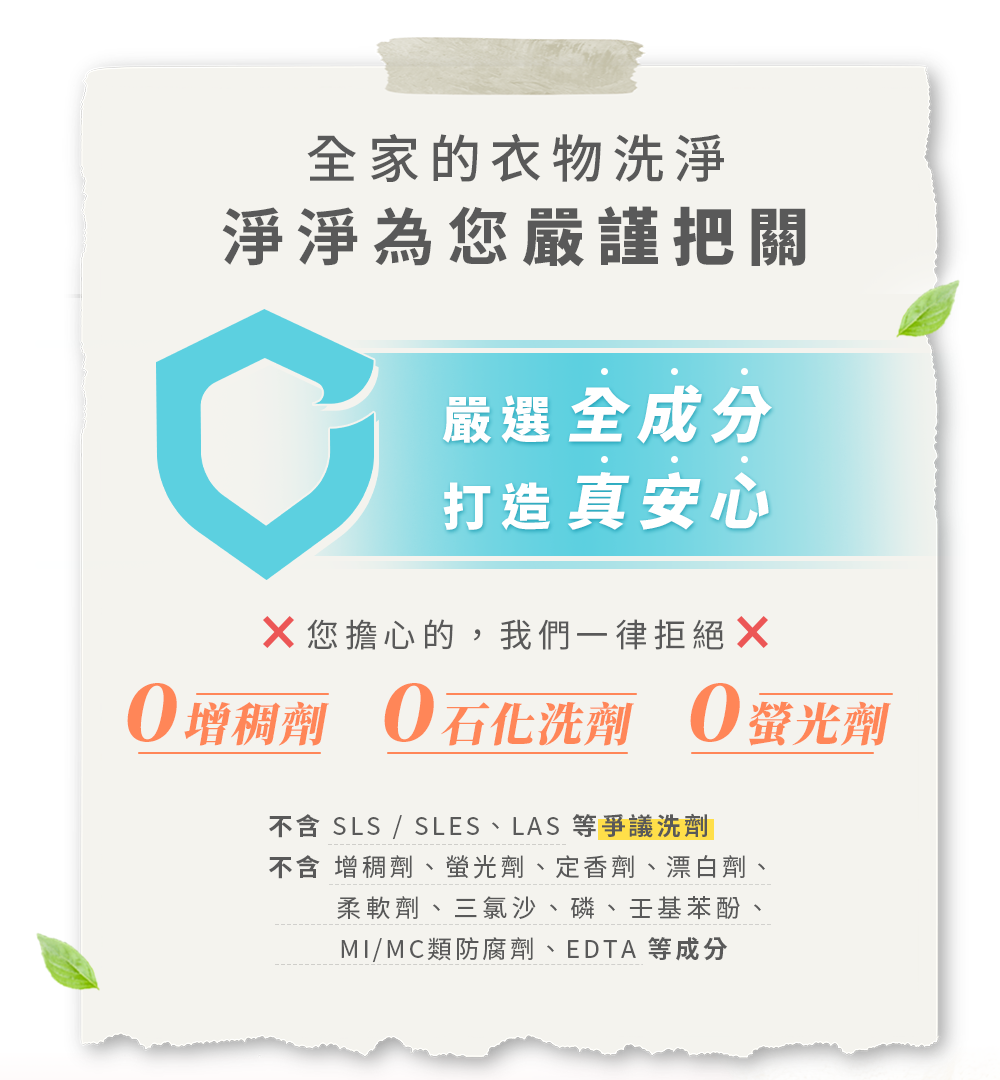 - 拒絕SLS/SLES,植萃來源環保洗劑