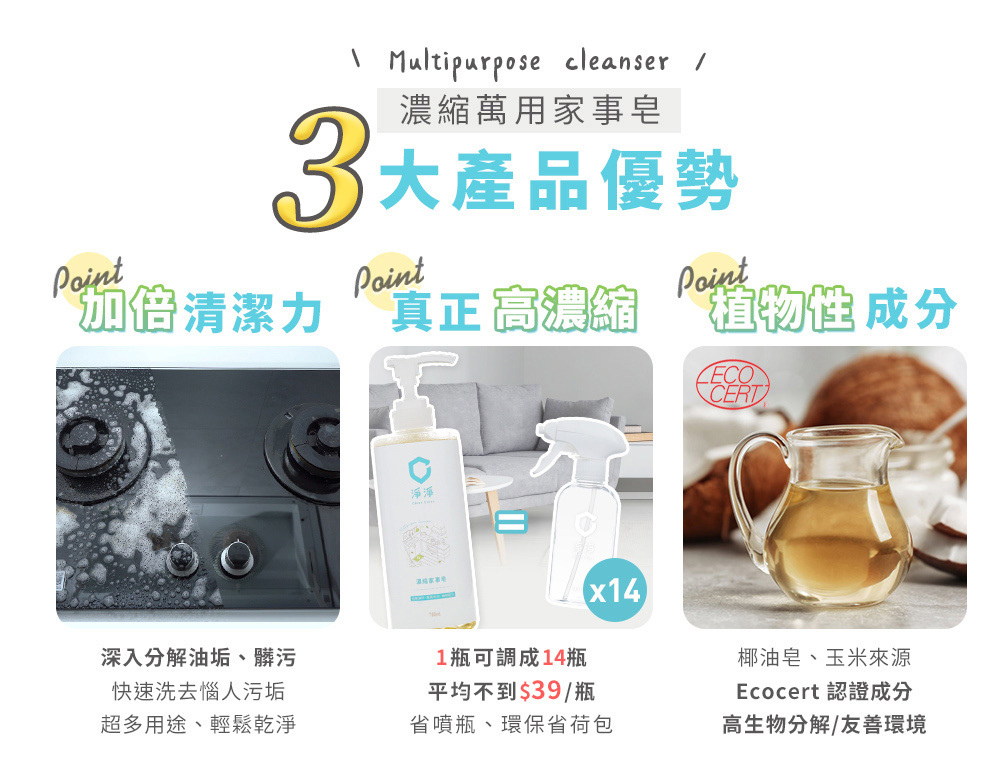 品名:【淨淨】 濃縮萬用家事皂/空罐噴瓶(調配稀釋用)
