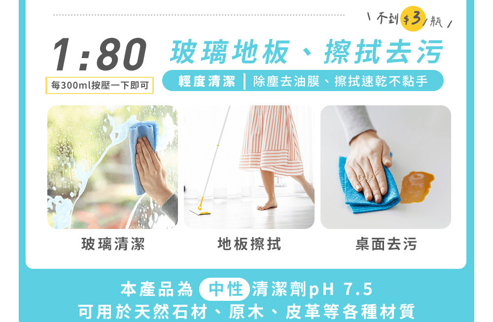 -適用於「玻璃清潔」、「地板擦拭」、「桌面去污」