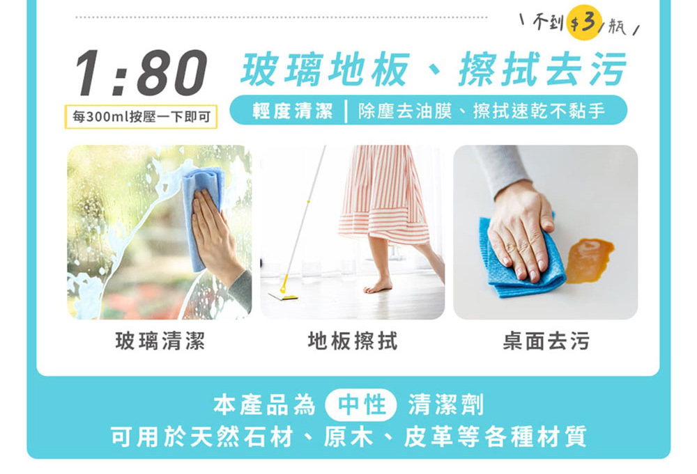 -適用於「玻璃清潔」、「地板擦拭」、「桌面去污」