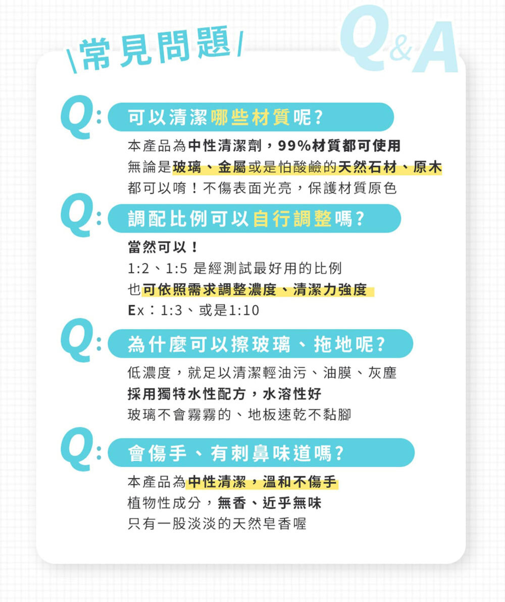 ◆ 居家萬用清潔劑採用植物性成分,環保安心不傷手,高濃度配方可依髒污程度自由調配比例,一瓶抵多瓶、高效清潔省荷包!