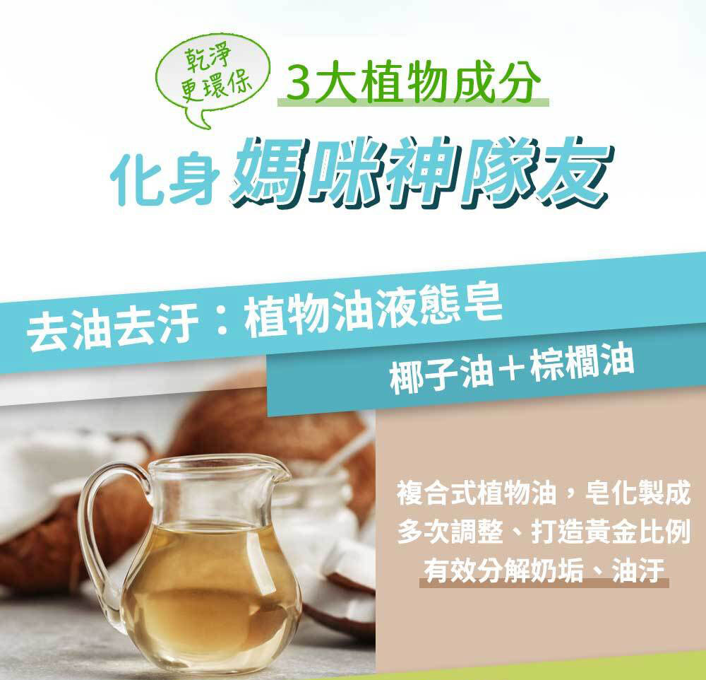 • ● 棕櫚油+椰子油+小蘇打,3 合 1 植物液態皂