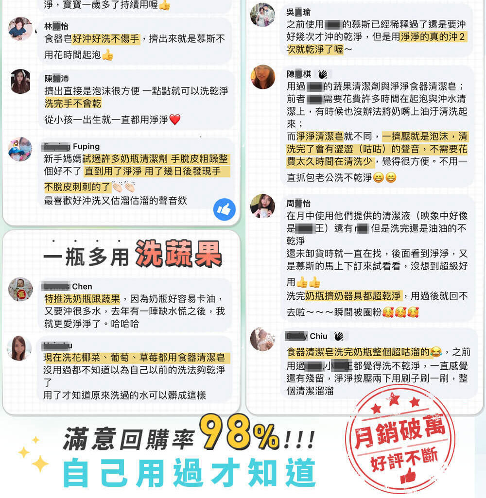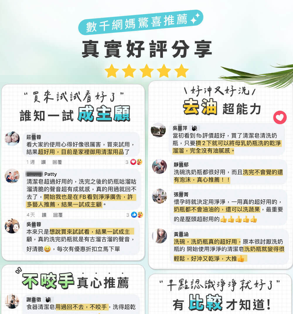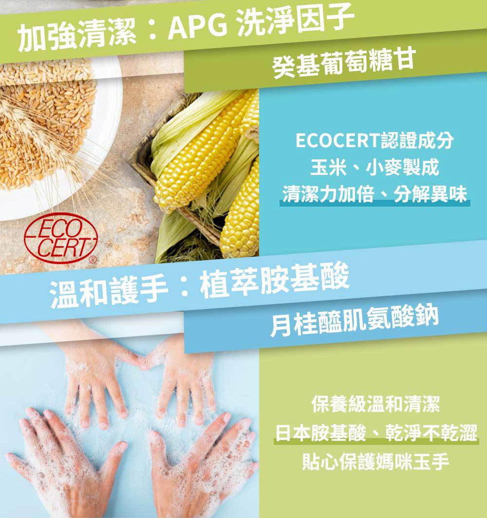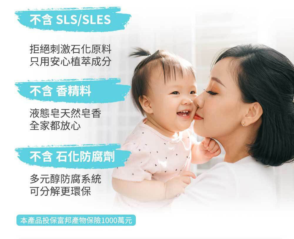 ◆ 淨淨奶瓶蔬果清潔劑採用 3 合 1 植物液態皂配方、不含香料、防腐劑,有效清除奶垢、洗淨蔬果殘留農藥,好沖不殘留、溫和不咬手,媽媽洗奶瓶的最佳選擇!