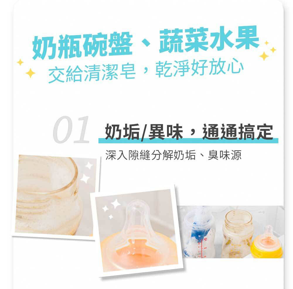 • ● 有效瓦解奶垢、油污,乾淨無異味