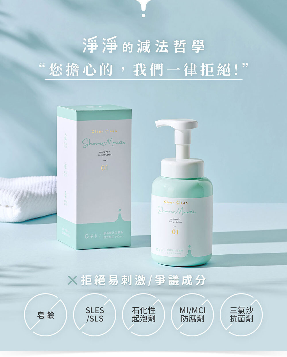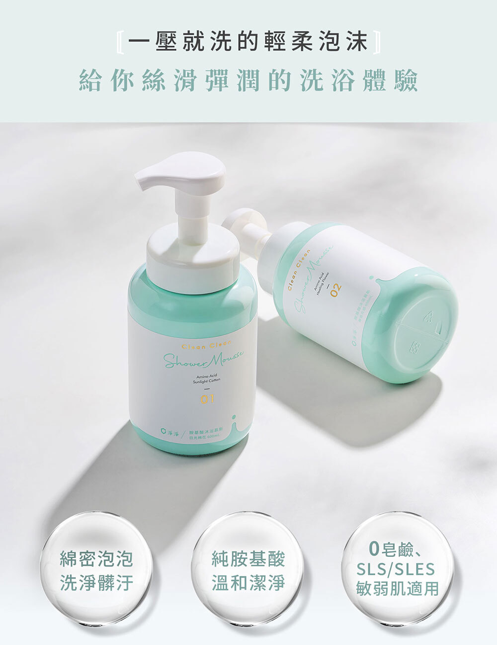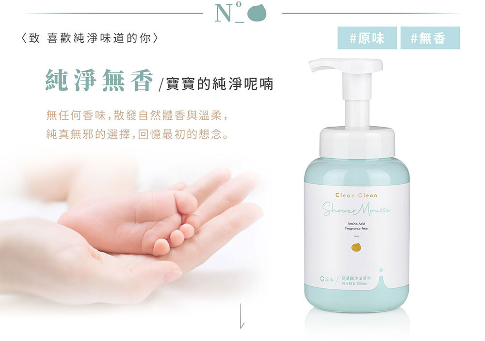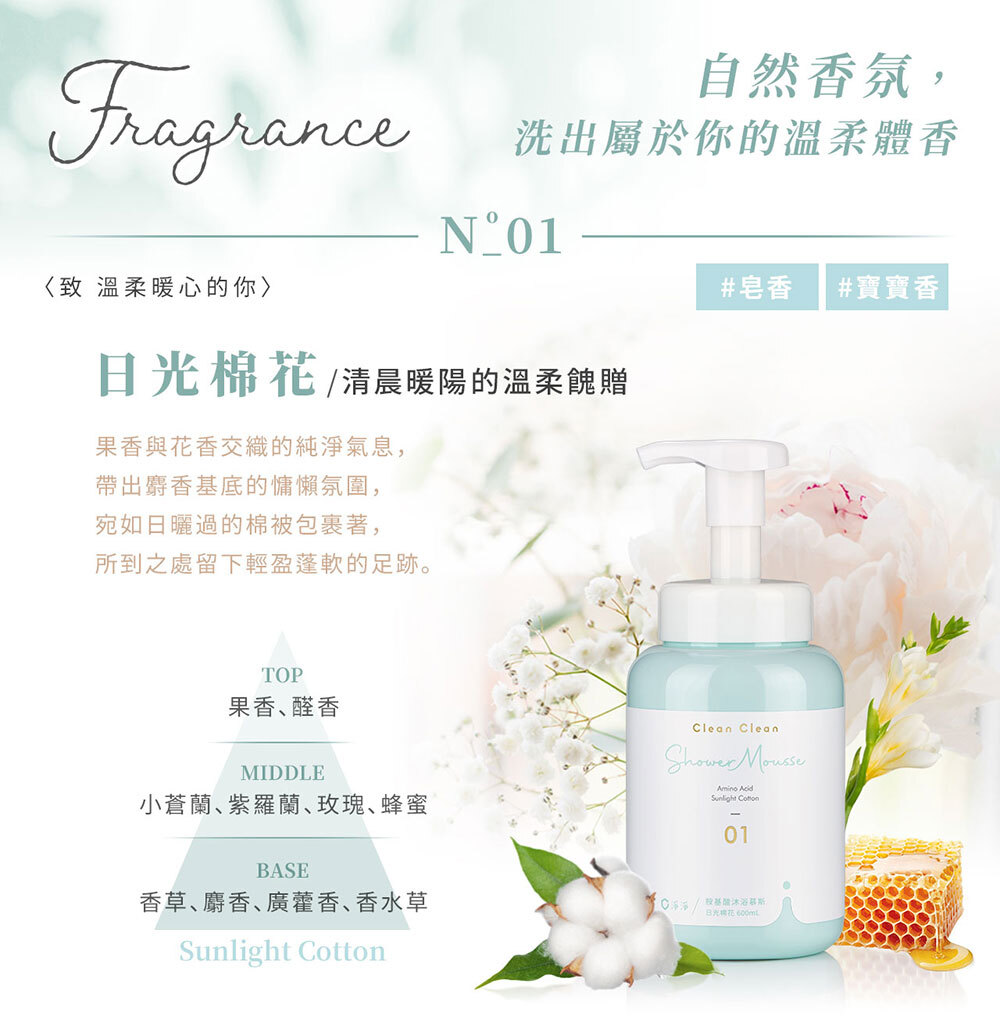 品名:【淨淨】胺基酸沐浴慕斯 600ml 三款可選(純淨無香/日光棉花/療癒花語)