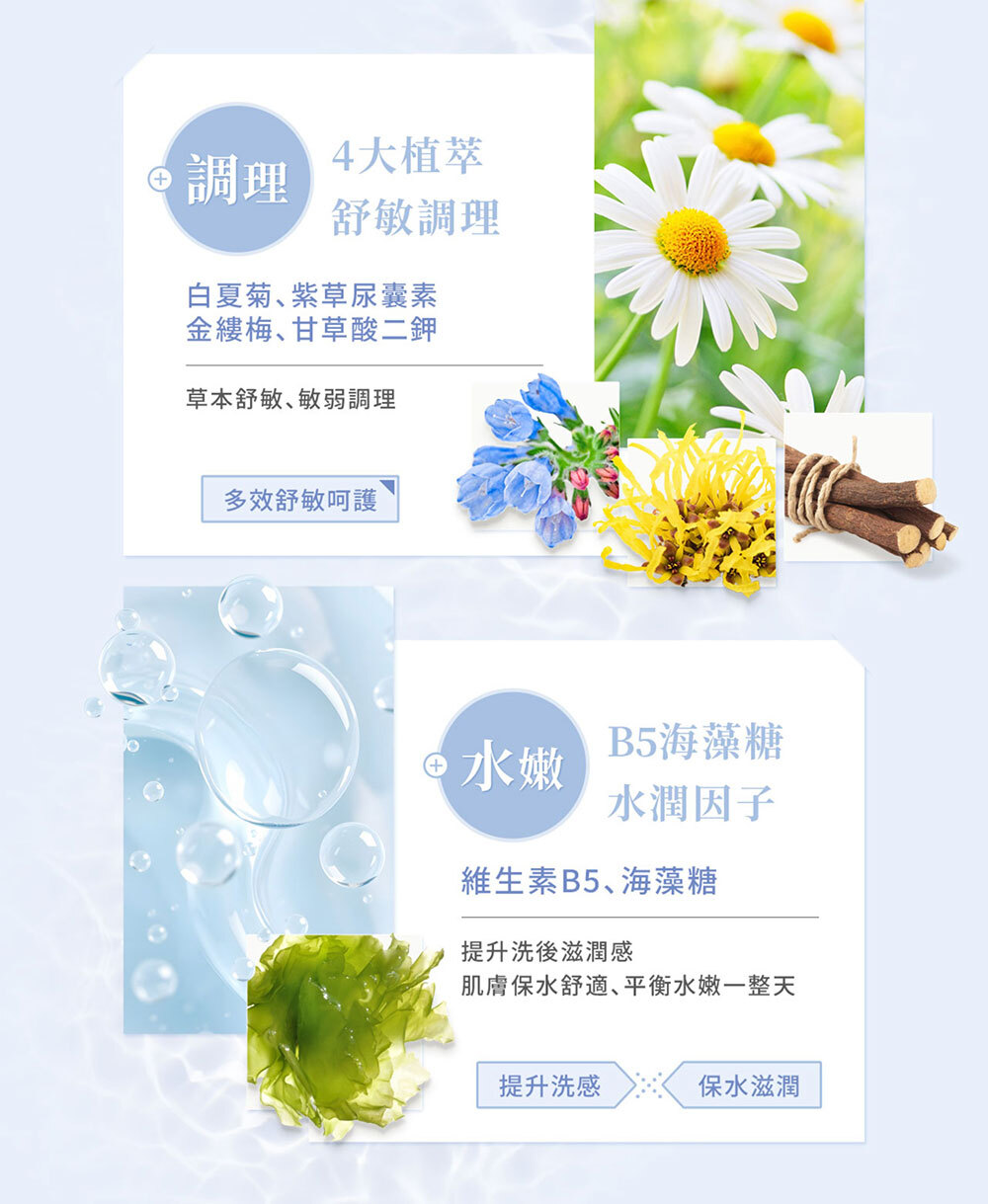 ◆草本多效呵護:白夏菊+紫草尿囊素+金縷梅+甘草酸二鉀