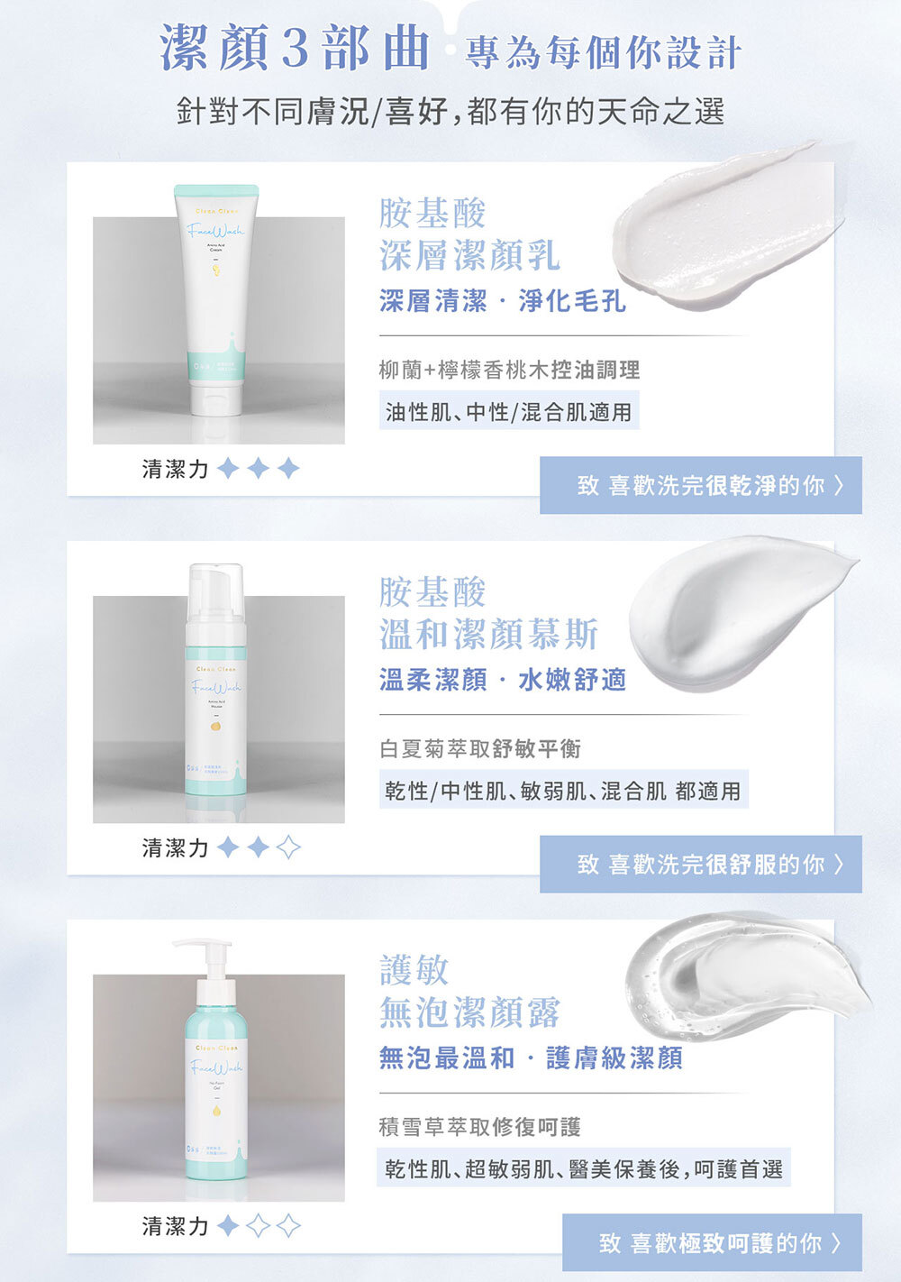 適用膚質:油性肌、乾性、中性肌、敏弱肌、混合肌