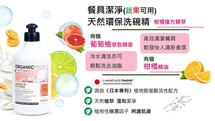 ◆有機葡萄柚萃取精華:即使用冷水清洗亦可輕鬆洗去油脂