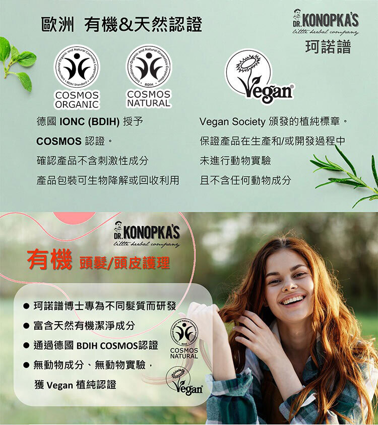 ◆含有珂諾譜博士獨家秘方 No. 37 草本護髮油(通過 BDIH COSMOS 有機認證)