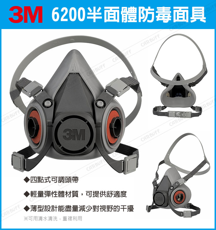 【3M 6200半面體防毒面具 x1】主要成份或材料:聚丙烯/熱塑彈性體,尺寸:中型,淨重:約75克,產地:波蘭