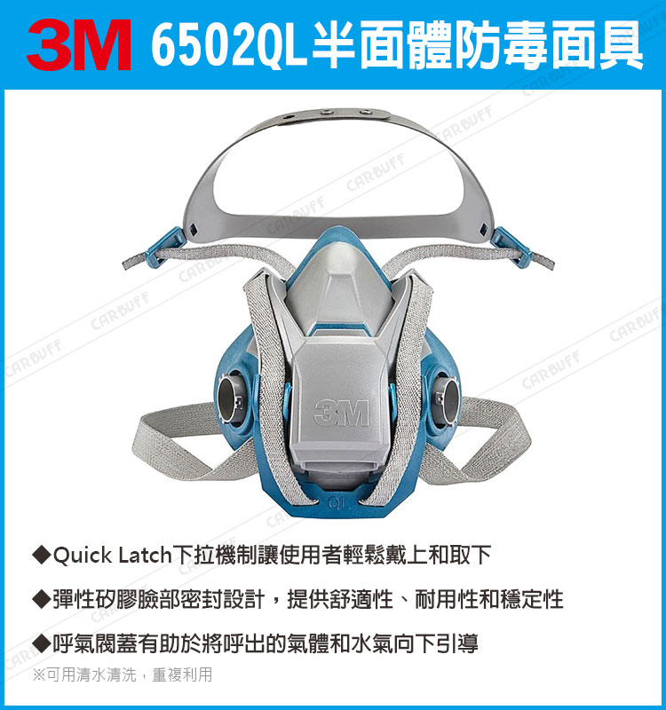 【3M 6502QL半面體防毒面具 x1】主要成份或材料:彈性矽膠,尺寸:中型,淨重:約115克,產地:美國