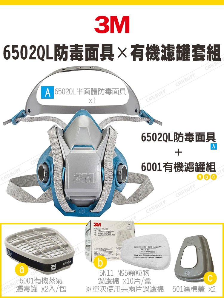 品名:3M 6502QL防毒面具+6001有機濾罐組