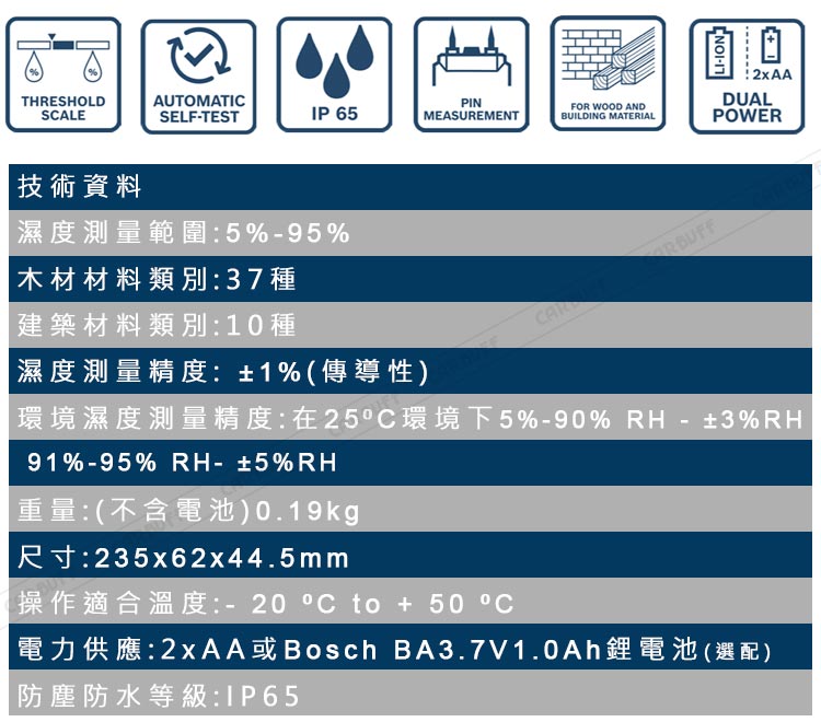 品名:BOSCH博世 建材與木材濕度檢測儀/材質濕度計