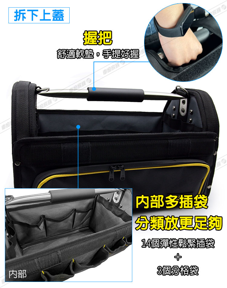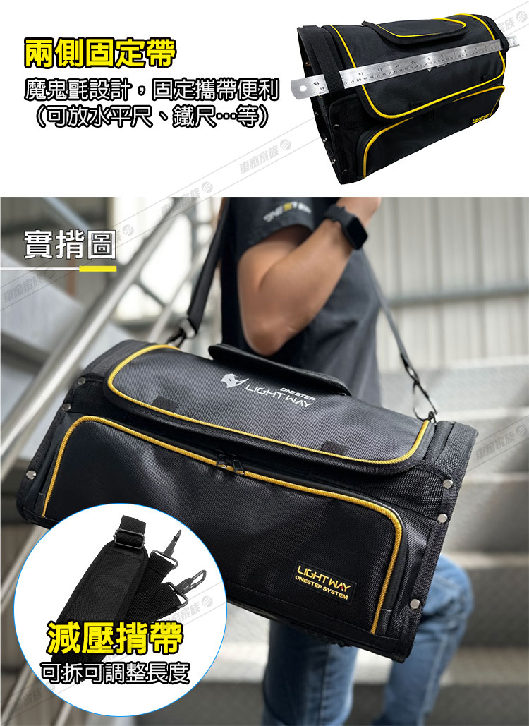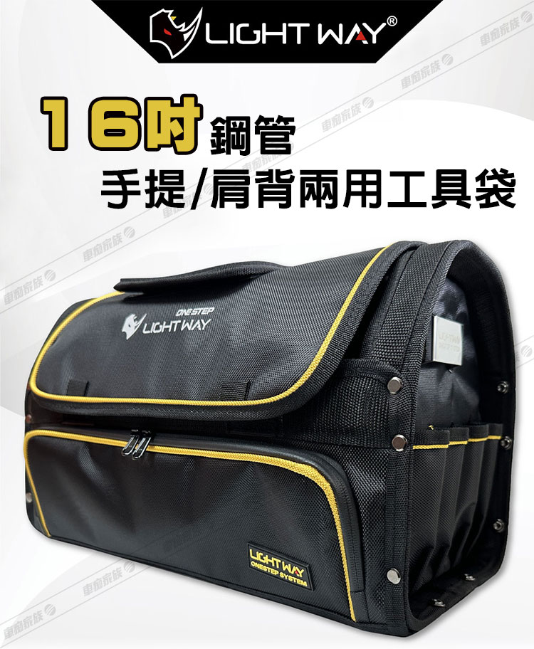 品名:LIGHT WAY 16吋鋼管工具包(附蓋) 手提/肩揹兩用工具袋